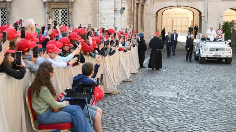 11 मई को वाटिकन में जेनोवा धर्मप्रांत के दृढ़ीकरण संस्कार लेनेवाले बच्चों से बातचीत करते हुए पोप फ्राँसिस ने कहा कि वे उन्हें देखकर खुश हुए।