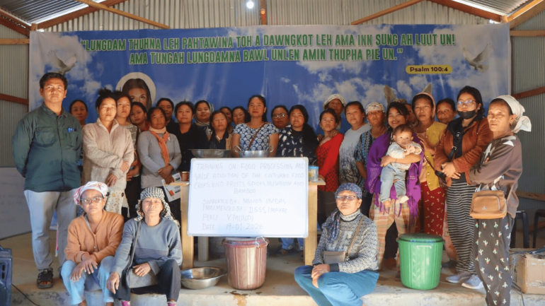 मणिपुर में इम्फाल के आर्चडायोसीज़ की डायोसेसन सोशल सर्विस सोसाइटी (DSSS) ने 19 जनवरी, 2026 को आंतरिक रूप से विस्थापित व्यक्तियों (IDPs) के लिए फूड प्रोसेसिंग और वैल्यू एडिशन पर एक दिवसीय ट्रेनिंग सेमिनार आयोजित किया। यह कार्यक्रम चुराचांदपुर जिले के वी. मुनपी गांव में नए स्थापित कैथोलिक पुनर्वास केंद्र में आयोजित किया गया था।
