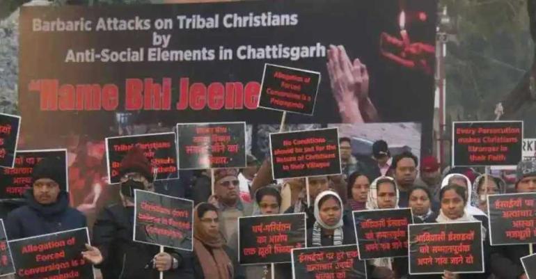 छत्तीसगढ़ में ईसाइयों ने चिंता जताई है, जब क्रिसमस से पहले हजारों हिंदुओं ने एक रैली निकालकर "अवैध रूप से चल रहे चर्चों और पुरोहितों द्वारा भोले-भाले आदिवासी लोगों का धर्म परिवर्तन कराने" के खिलाफ सख्त कार्रवाई की मांग की।