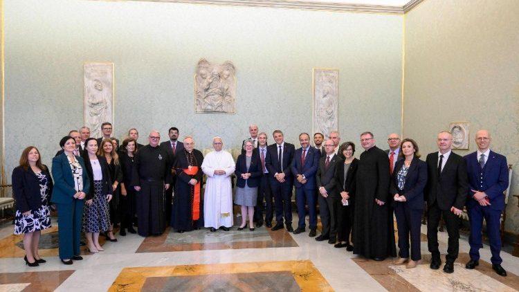 अपने संबोधन में, पोप ने कहा कि उनकी रोम यात्रा ऐसे समय में हो रही है जब "ख्रीस्तियों सहित विभिन्न विश्वास रखने वालों के विरुद्ध" शत्रुता और हिंसा बढ़ रही है। इसके विपरीत, आपका मिशन यह घोषणा करता है कि, मसीह में एक परिवार के रूप में, हम अपने सताए गए भाइयों और बहनों का परित्याग नहीं करते। बल्कि, हम उन्हें याद करते हैं, उनके साथ खड़े होते हैं, और उनकी ईश्वर प्रदत्त स्वतंत्रताओं को सुरक्षित करने के लिए प्रयास करते हैं।” पोप ने कहा कि कुरिंथियों को लिखे पत्र में संत पौलुस हमें याद दिलाते हैं कि "यदि एक सदस्य दुःख उठाता है, तो सब मिलकर दुःख उठाते हैं।" ये शब्द आज हमारे हृदय में गूंजते हैं, क्योंकि मसीह के शरीर के किसी भी सदस्य का दुःख पूरी कलीसिया द्वारा साझा किया जाता है।