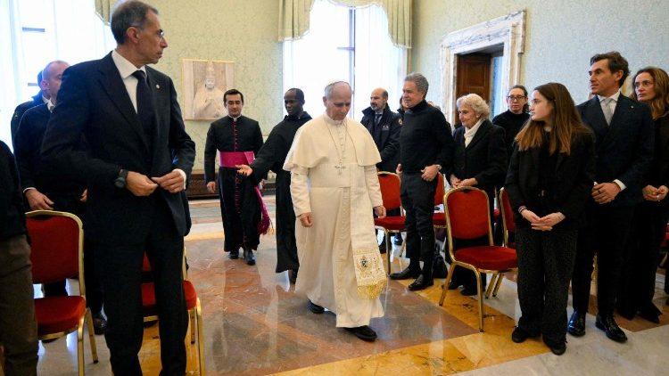 पोप ने कहा कि वे परिवारों से मिलकर "बहुत भावुक" महसूस कर रहे हैं क्योंकि इस समय उनके "सबसे प्यारे लोगों में से एक, सबसे प्यारा ने अत्याधिक हिंसा की तबाही में अपनी जान गंवा दी, या लंबे समय से अस्पताल में पड़ा है, और एक भयानक आग के कारण उसका शरीर खराब हो गया है जिसने पूरी दुनिया की कल्पना को झकझोर दिया है" सचमुच यह विश्वास की परीक्षा है।