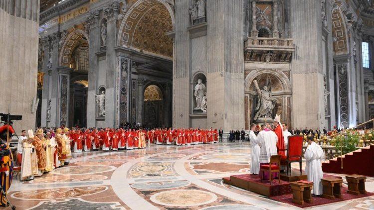 आनेवाले दिनों में कलीसिया के भावी परमाध्यक्ष के चुनाव हेतु आयोजित कार्डिनल मण्डल की बैठकों के लिये ईशशास्त्रीय प्रार्थना का उच्चार करते हुए उन्होंने कहाः "आओ, सच्चा प्रकाश; आओ, अनन्त जीवन; आओ, छिपा रहस्य; आओ, नामहीन खज़ाना; आओ, अकथनीय वास्तविकता; आओ, अकल्पनीय व्यक्ति; आओ, अनंत आनंद; आओ, संध्या रहित प्रकाश; आओ, उन सभी की अचूक आशा जिन्हें बचाया जाना है। आओ, तुम जो हमेशा मेरी दुखी आत्मा को चाहते हो..."