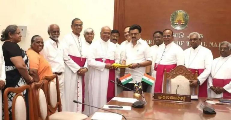 बिशपों ने स्टालिन से पाठ्यपुस्तकों और लैपटॉप जैसी सरकारी मुफ्त सुविधाओं के वितरण में अल्पसंख्यक संस्थानों के साथ भेदभाव को समाप्त करने का भी आग्रह किया।