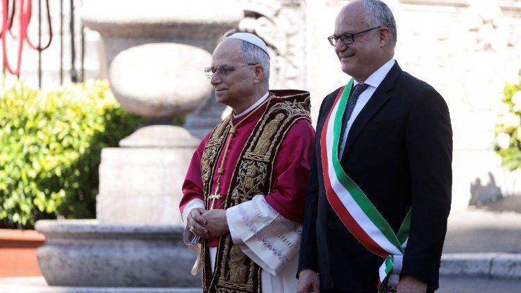 पोप लियो 14वें ने रोम के कपिटोलिन हिल पर नागर सरकार के मुख्यालय के पास अराचेली प्रांगण का दौरा किया और रोम के महापौर रॉबर्टो गुआल्तिएरी से औपचारिक मुलाकात की।