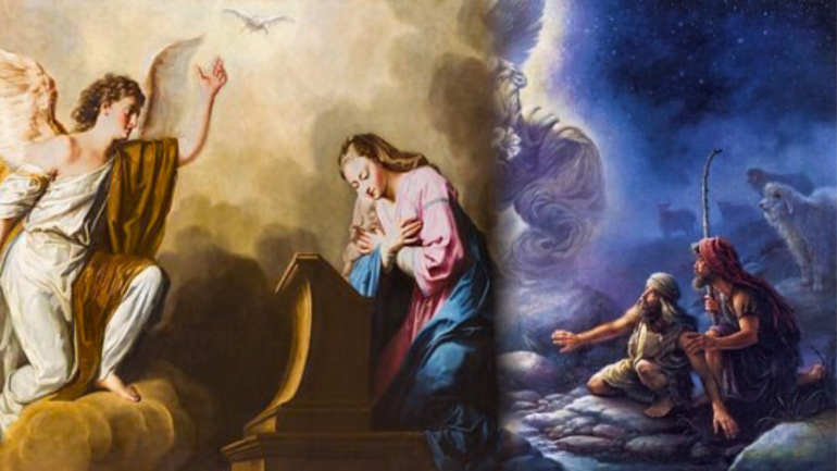एक और मुलाकात चरवाहों और स्वर्गदूतों के बीच होती है। ल्यूक बताते हैं कि चरवाहे अपने झुंड की रखवाली कर रहे थे जब एक स्वर्गदूत ने सभी लोगों के लिए बहुत खुशी की खुशखबरी सुनाई: एक उद्धारकर्ता का जन्म हुआ है। ये चरवाहे आम लोग थे, शायद नज़रअंदाज़ किए गए थे, और निश्चित रूप से शक्तिशाली नहीं थे। फिर भी उन्हें खुशखबरी पाने वाले पहले लोगों के रूप में चुना गया।