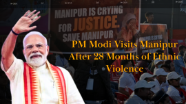 देश-विदेश 28 महीने की जातीय हिंसा के बाद प्रधानमंत्री मोदी का मणिपुर दौरा प्रधानमंत्री नरेंद्र मोदी 13 सितंबर, 2025 को चुराचांदपुर पहुँचे, जो मणिपुर में जातीय संघर्ष शुरू होने के 28 महीनों बाद उनकी पहली यात्रा थी।