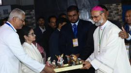 देश-विदेश आर्चबिशप ने क्रिसमस मिस्सा में बंगाल की मुख्यमंत्री को क्रिब सेट गिफ्ट किया बंगाल की मुख्यमंत्री ममता बनर्जी कोलकाता के कैथेड्रल ऑफ़ द मोस्ट होली रोज़री में क्रिसमस की आधी रात की सर्विस में शामिल हुईं, जहाँ आर्चबिशप एलियास फ्रैंक ने उन्हें हाथ से बना टेबल-टॉप क्रिब सेट भेंट किया।